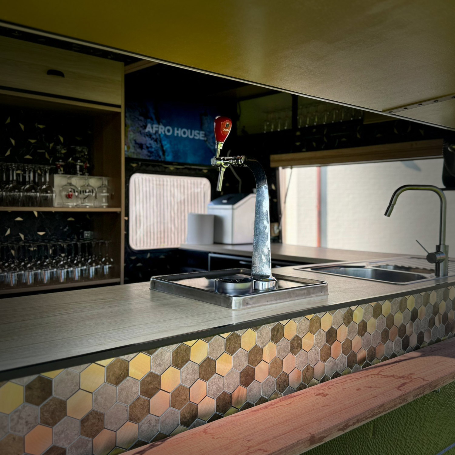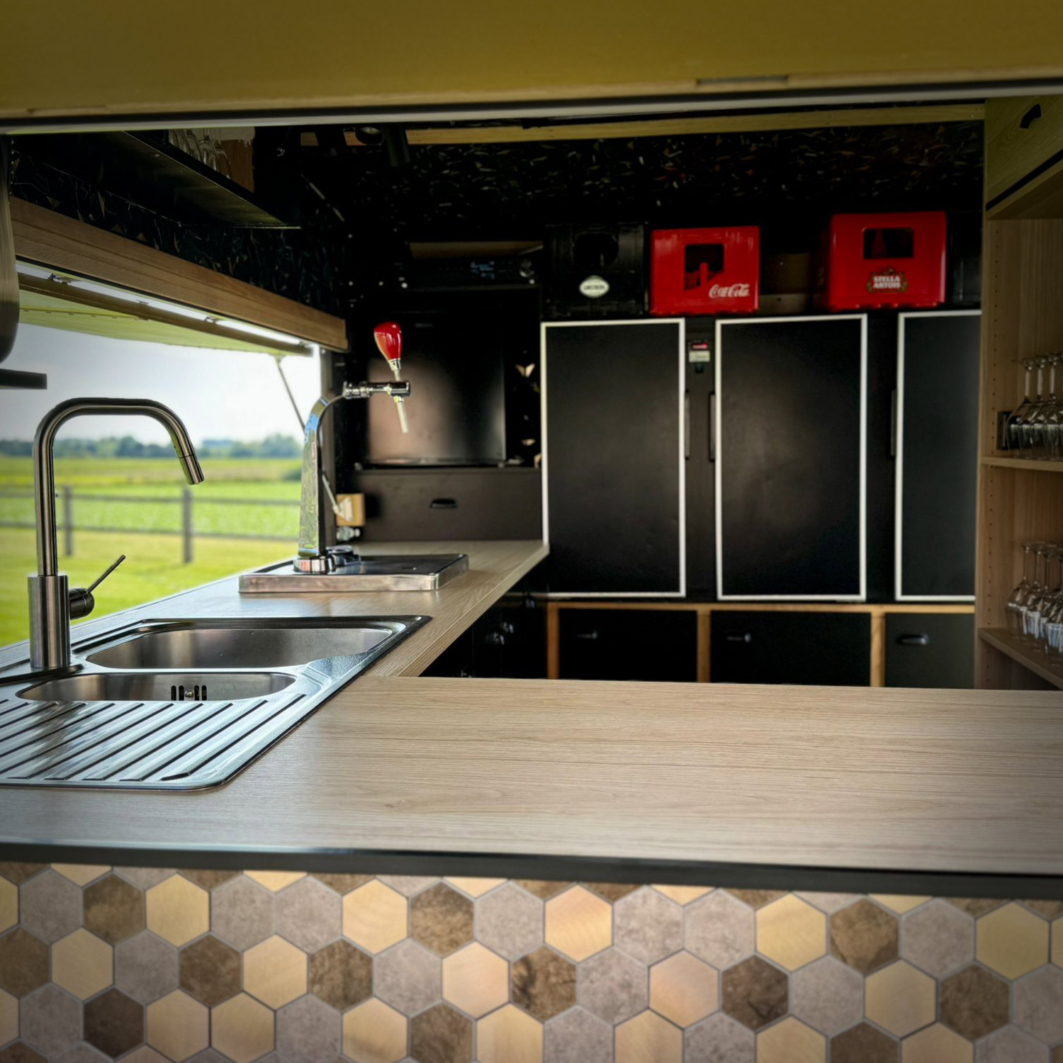 uitgeruste bar die overal kan neerstrijken – op een feest, in de tuin, bij een bedrijf. Waar hij